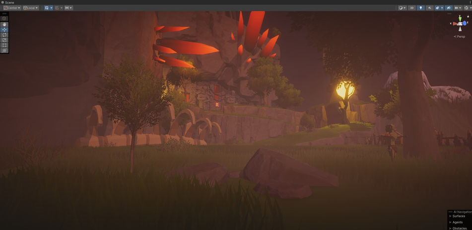 I used a combination of the Unity terrain tool as well as assets from various different art packs and blended them together to create the visual style for the level.
